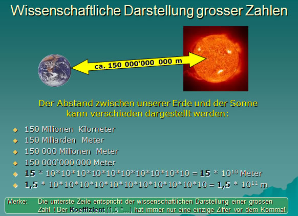 Stellenwert, wissenschaftliche Darstellung grosser Zahlen, Zahlwert, Zehnerpotenzen