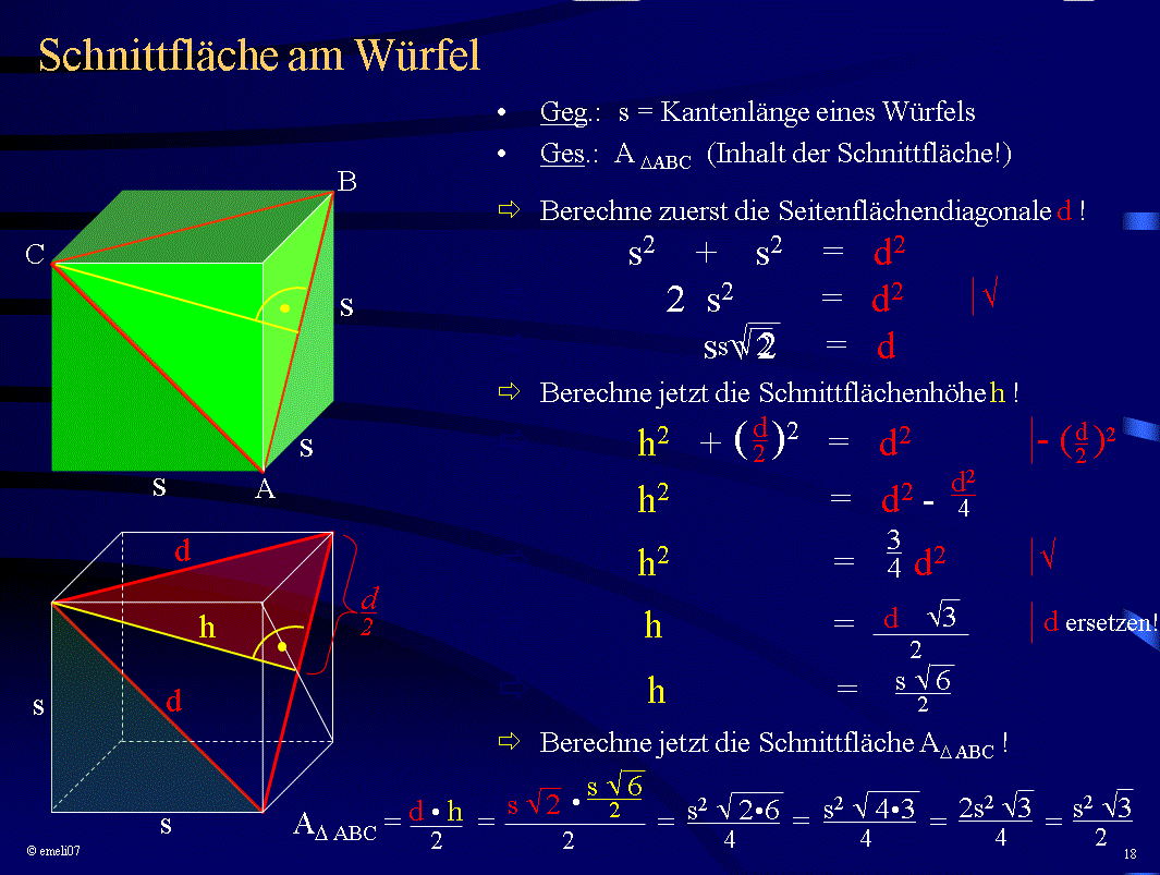 Eine der fundamentalsten Sätze ist der Pythagoreische Lehrsatz. Sind zwei Seiten eines rechtwinkligen Dreiecks bekannt, lässt sich daraus die Länge der dritten Seite damit rechnerisch ermitteln.