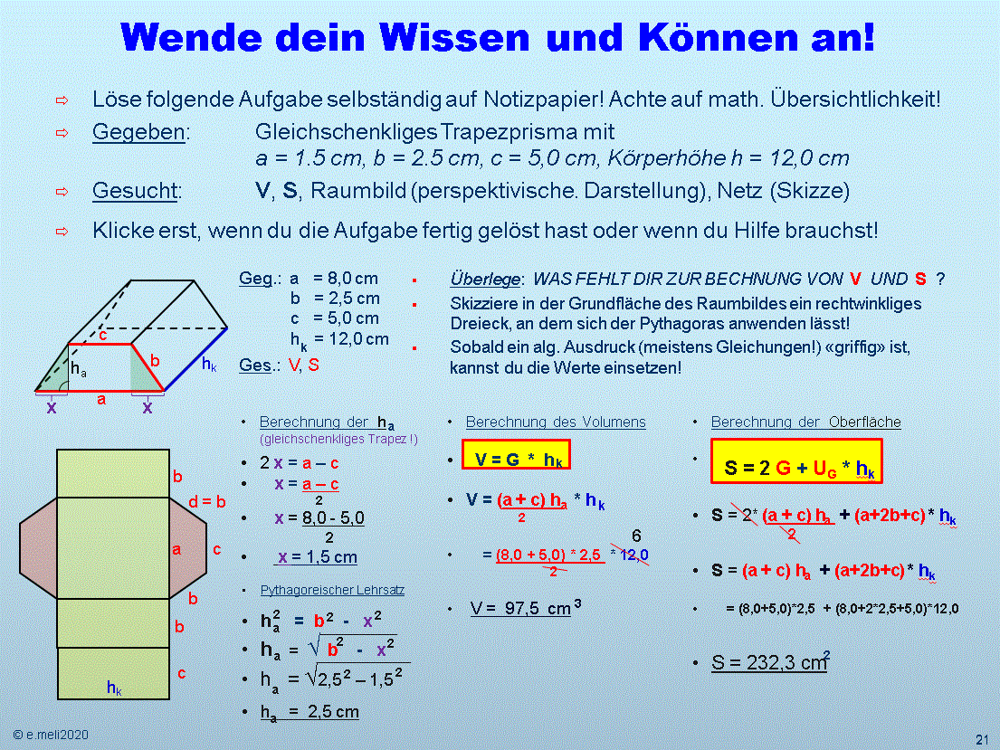 Ein besonderes Augenmerk gilt den Netzen der Prismen und daraus der Oberflächen- und Mantelberechnung.