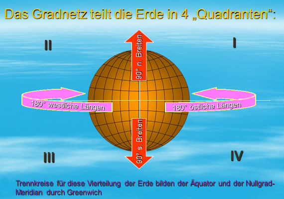 Breitenkreise, Ekliptik, Greenwich, Kompass, Längengrade, Meridiane, Nord- u.